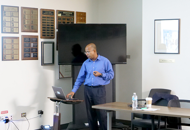 On July 30, NUANCE was excited to host Dr. Anil Mane from the Applied Material Division of Argonne National Laboratory. He discussed his work developing an atomic layer deposition (ALD) method to synthesize nanocomposite coatings comprised of conducting, metallic nanoparticles embedded in an amorphous dielectric matrix. After the talk he was available to answer questions and got a tour of NUANCE's new space in the AB Wing of the Technological Institute. Thanks Dr. Mane!